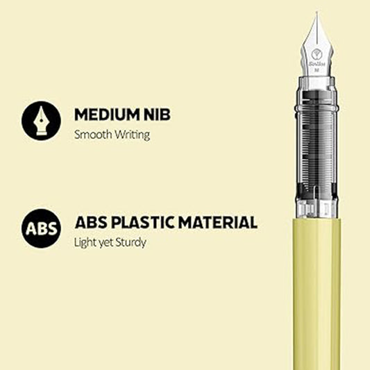 Scrikss Primeo Medium Nib Fountain Pen | 3 Cartridges Included | Stainless Steel Nib & ABS Body | Kiwi Green | in Blister Pack